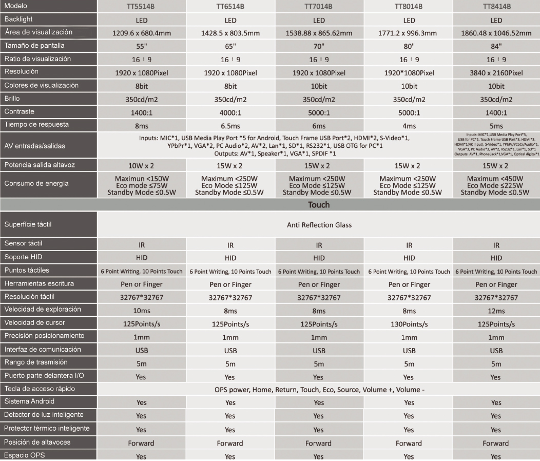 Ajuste de luz automático, sistema de control inteligente de temperatura, múlti- ples modos de funcionamiento “eco friendly”. Estas son algunas de las funciones de nuestra pantalla interactiva. Mejore sus interacciones y motive a su audiencia con las nuevas herramientas de presentación.